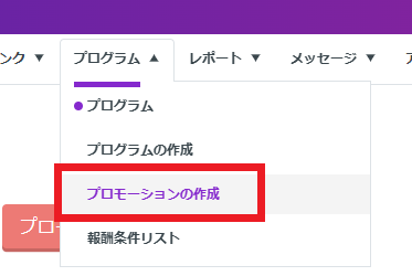 プログラムメニュー>プロモーションの作成をクリックします。