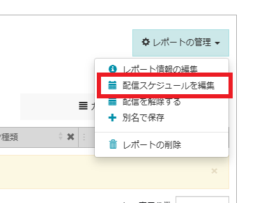 設定したレポート配信予約のスケジュール編集は以下「配信スケジュールを編集」メニューから