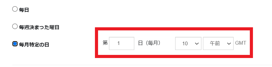 「毎月特定の日」の場合、配信希望の日と時刻を設定してください。